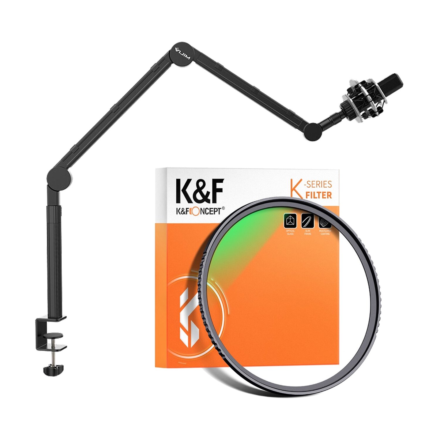 Heavy-duty adjustable boom arm stand suitable for DSLR cameras, smartphones, and microphones. Available in black. Weight: 32 ounces (2 pounds).